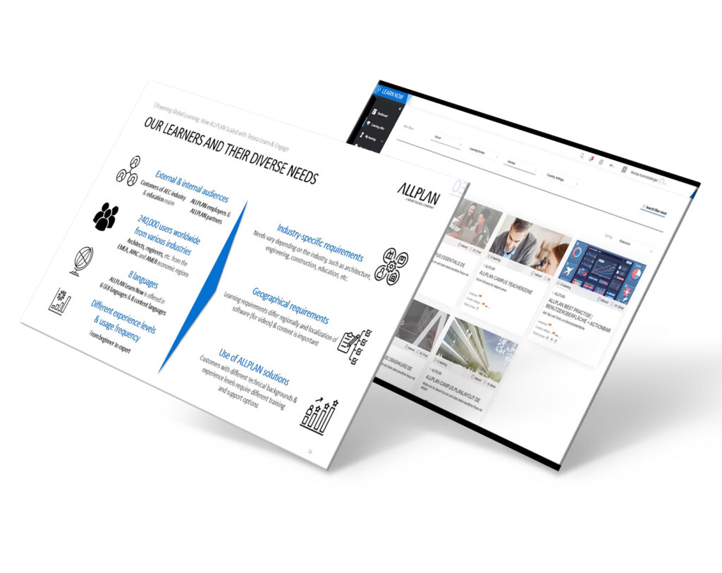 Wir zeigen, wie wir mit ALLPLAN eine internationale Lernplattform umgesetzt haben – und geben Ihnen Impulse, wie Sie selbst Ihr LMS erfolgreich aufbauen können.